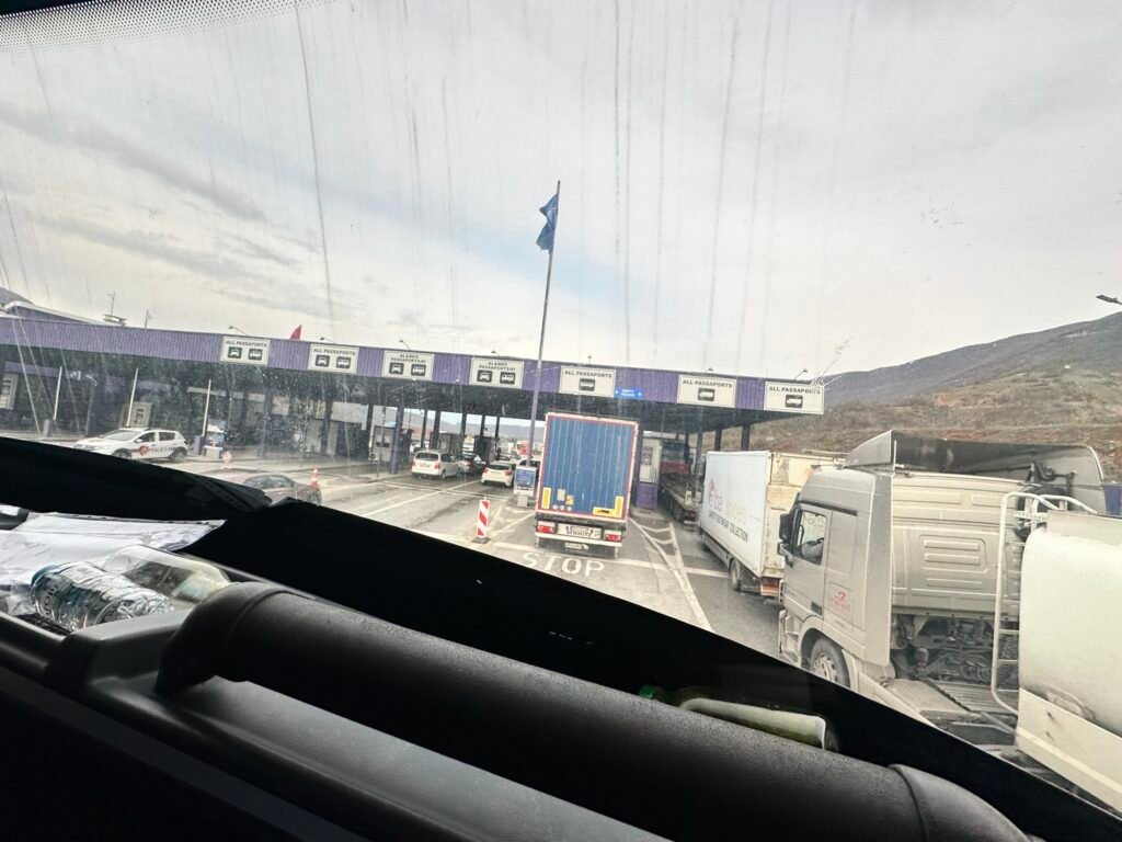 Arnavutluk-Kosova sınır geçişi, diğer Balkan geçişlerine kıyasla oldukça hızlı tamamlanıyor. İki ülke arasındaki ilişkilerin dostane seyri, bürokratik işlemlerin de pratik yürütülmesini sağlıyor. Sınır polisi otobüse binerek pasaportları topluyor, damgalayıp geri veriyor; tüm süreç genellikle 20-30 dakika içinde noktalanıyor.